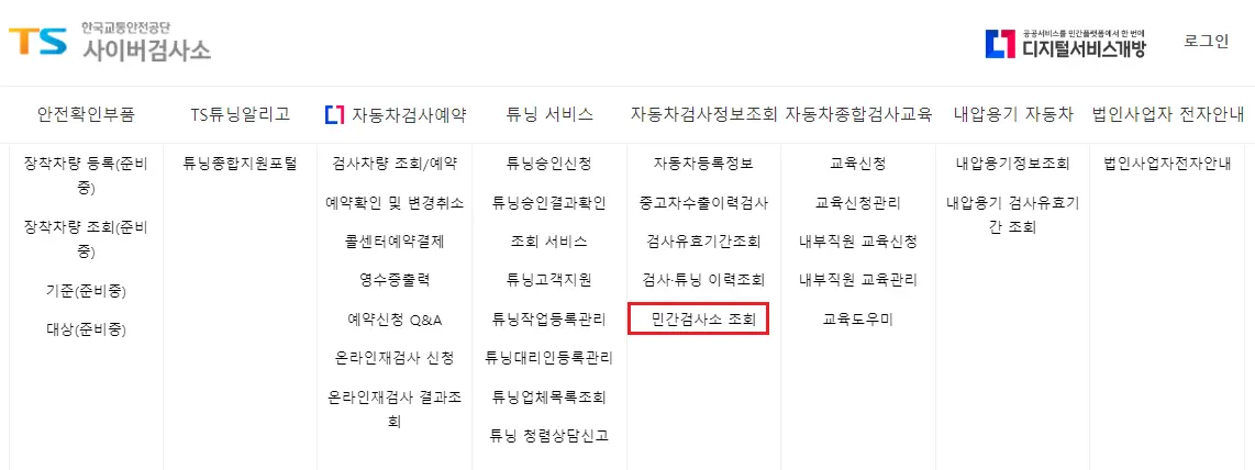 한국교통안전공단 사이버 검사소 홈페이지에서 민간검사소(지정정비사업자)를 선택합니다.