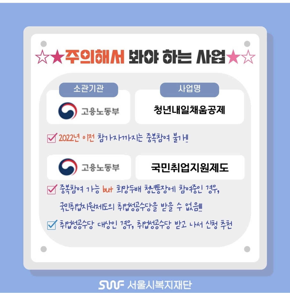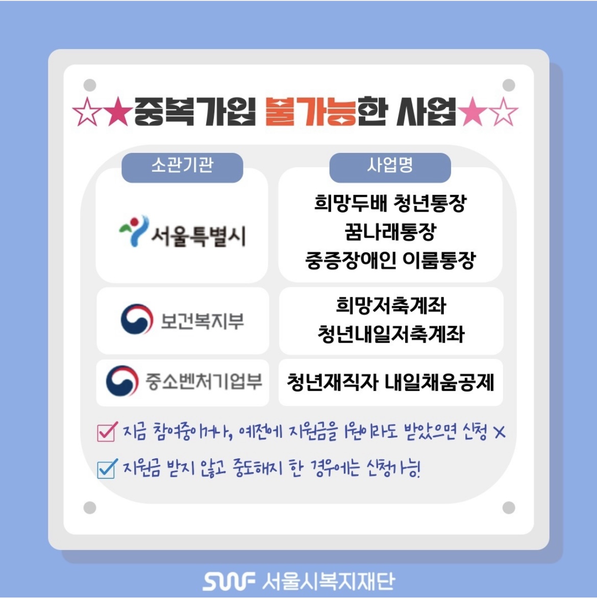 희망두배 청년통장 유사 사업 중복참여 가능여부 비교